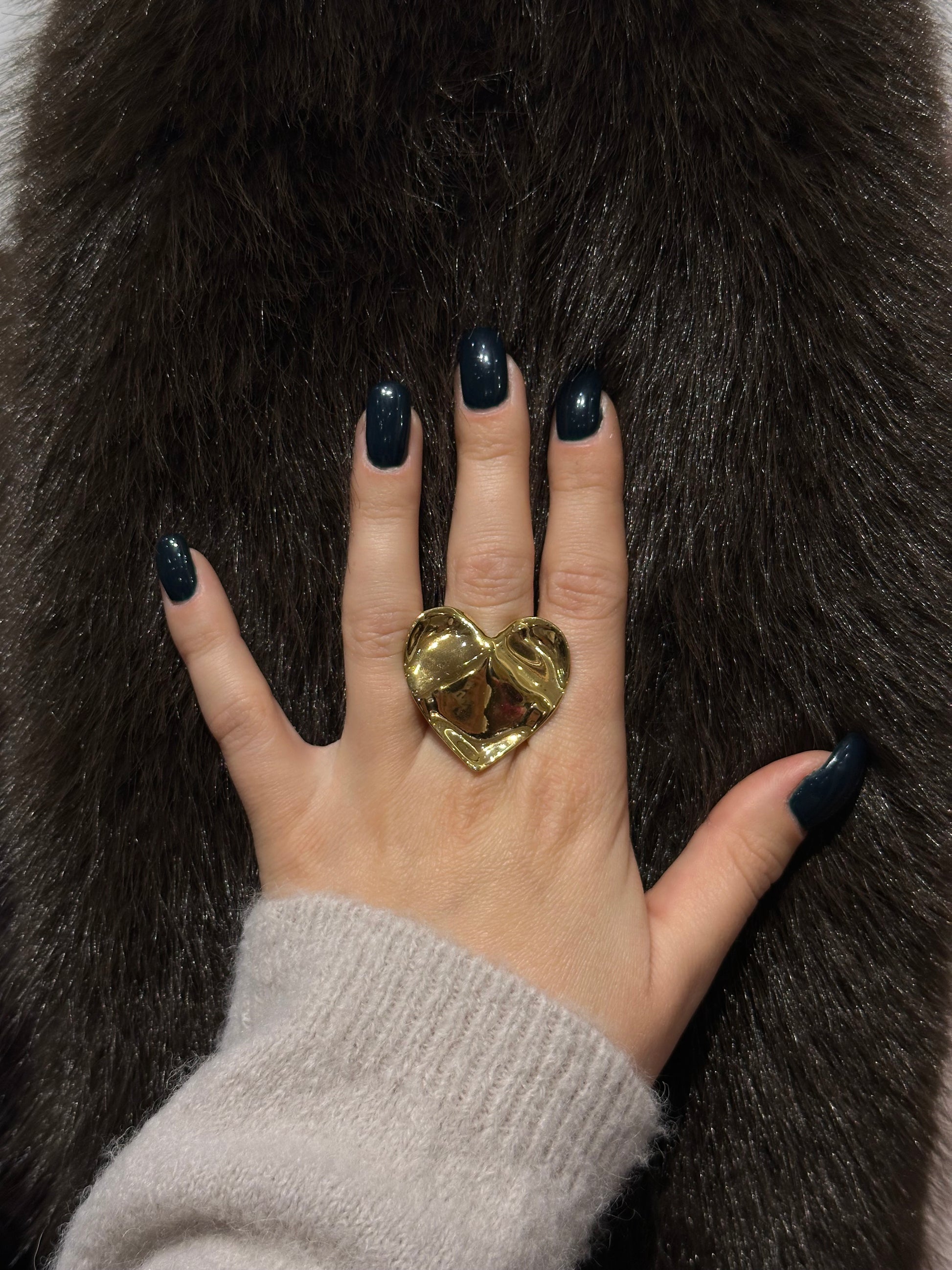 Bague cœur xxl dorée avec un effet bosselé !