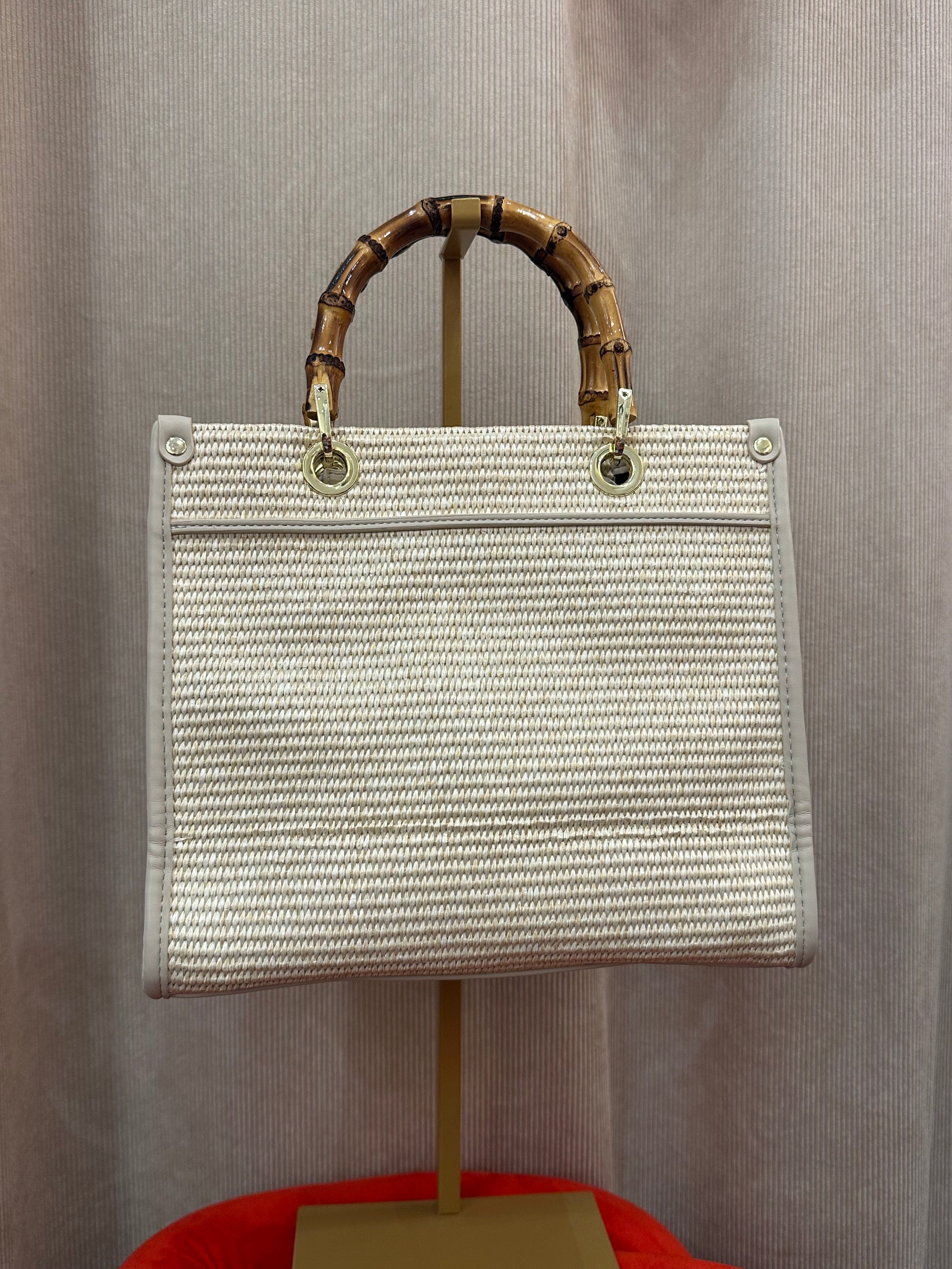Envie d’un summer bag chic, sobre et intemporel ? Découvrez notre sac Clory en raphia écru avec ses anses en bambou et son gros logo beige ! Il se porte au bras, à la main ou en bandoulière.