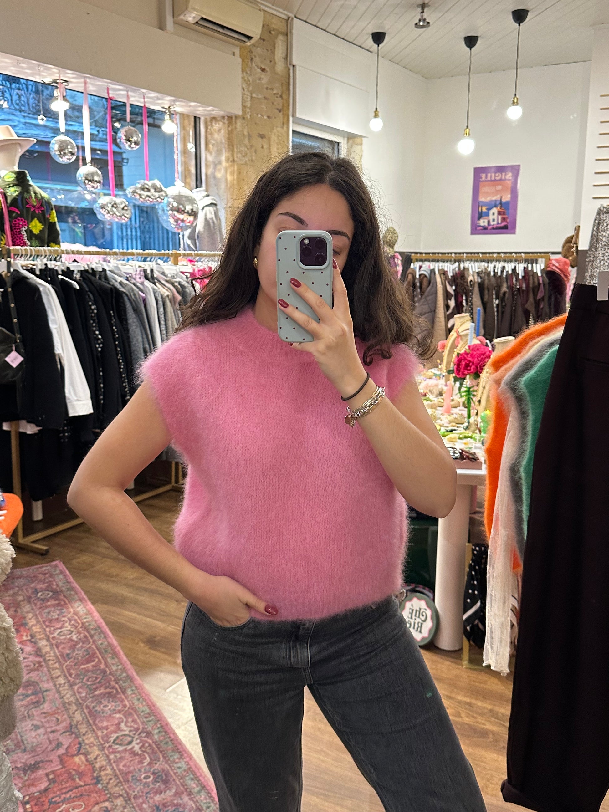 Le plus beau pull mohair sans manches c’est notre pull Meryl et sa magnifique couleur rose bonbon ! Disponible en d’autres coloris