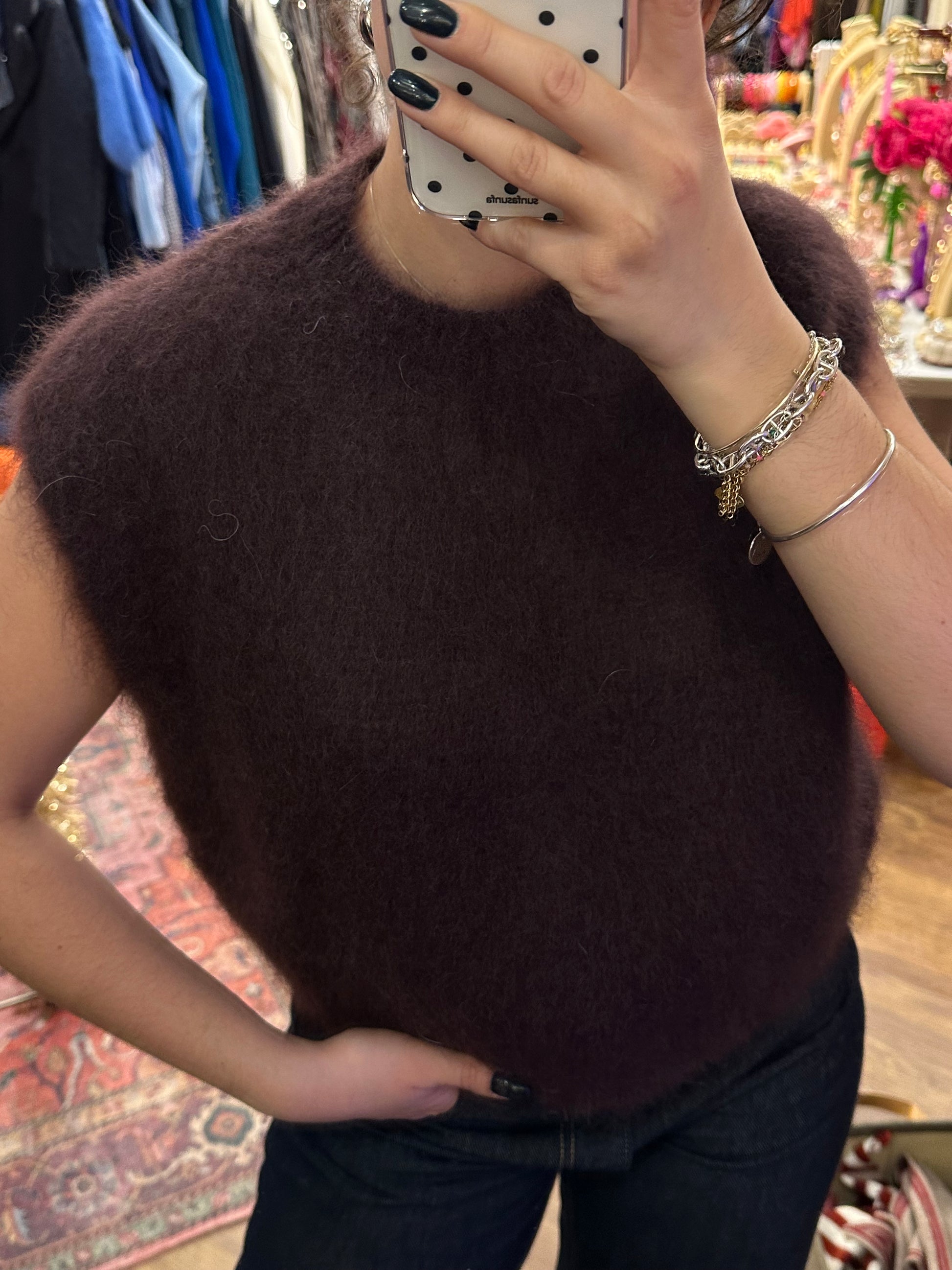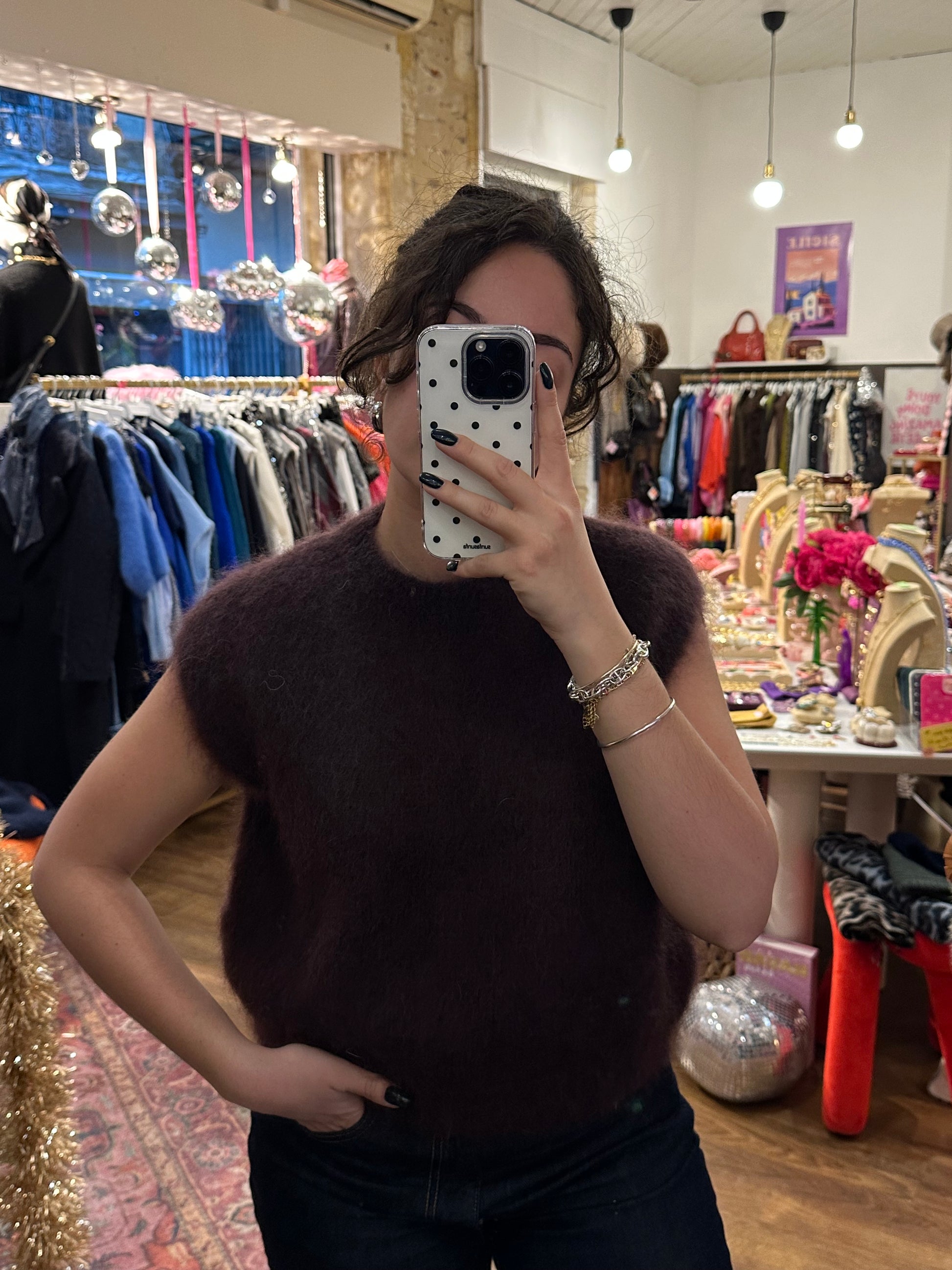 Le plus beau pull mohair sans manches c’est notre pull Meryl et sa magnifique couleur marron chocolat ! Disponible en d’autres coloris