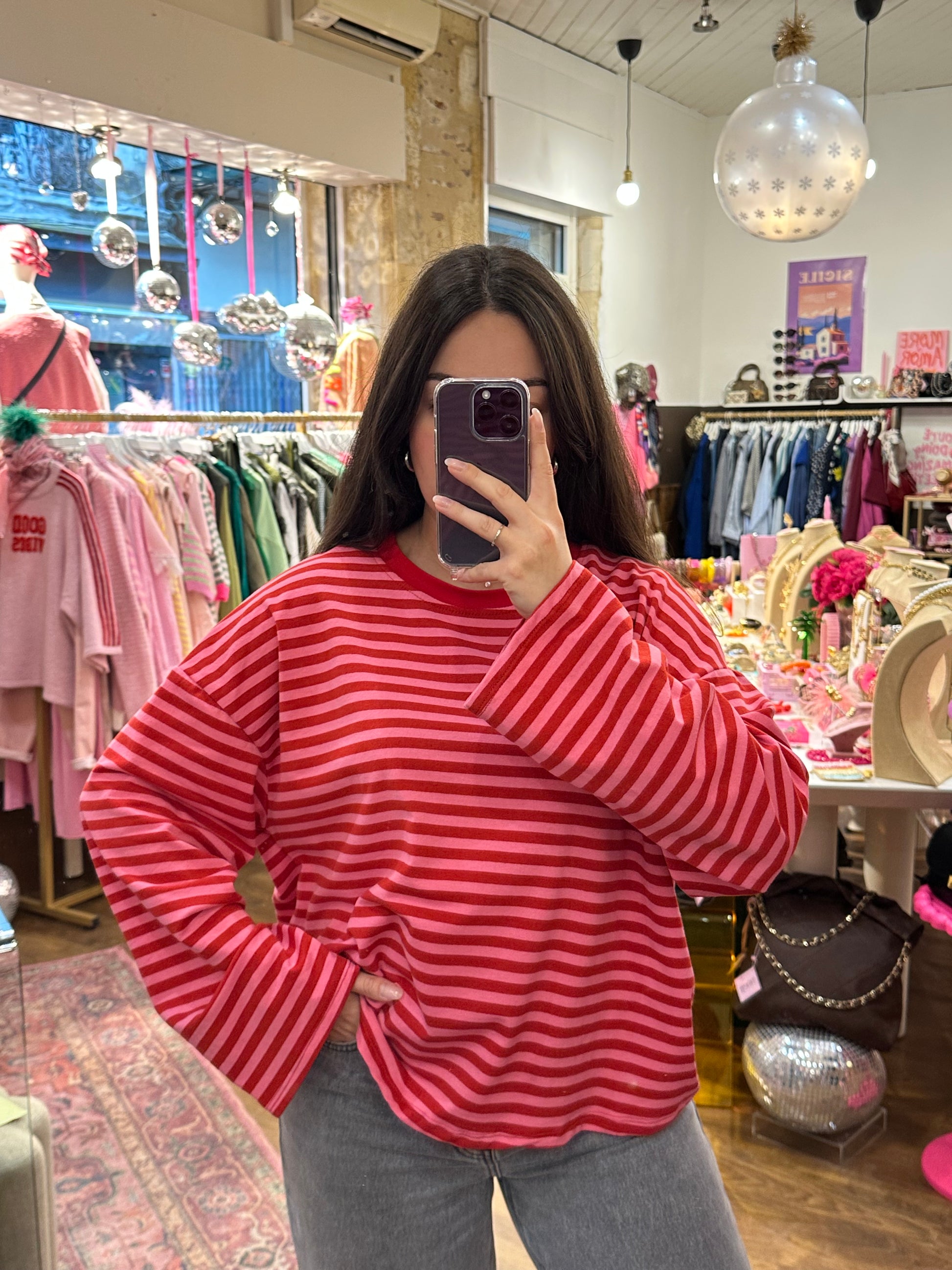 Nos jolies marinières Iconic à manches longues ultra-tendance ! Ce modèle combine le charme intemporel de la marinière avec une touche pop et acidulée. Sa coupe oversize et ses détails texturés en font la pièce maîtresse idéale pour un look urbain et créatif.