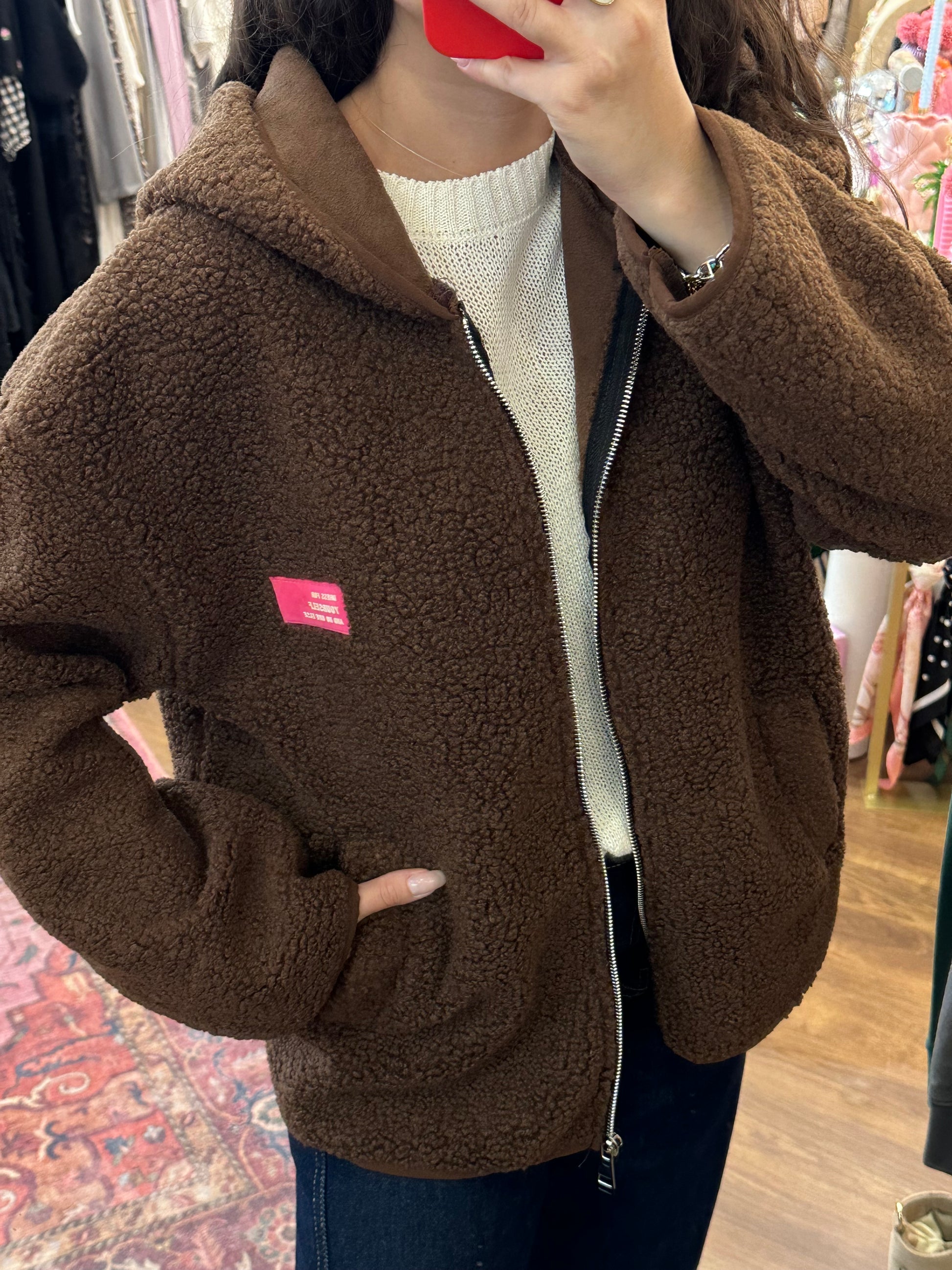 Restez bien au chaud avec notre veste polaire Paddington ! Fermeture par zip et disponible en choco, prune, écru, noir